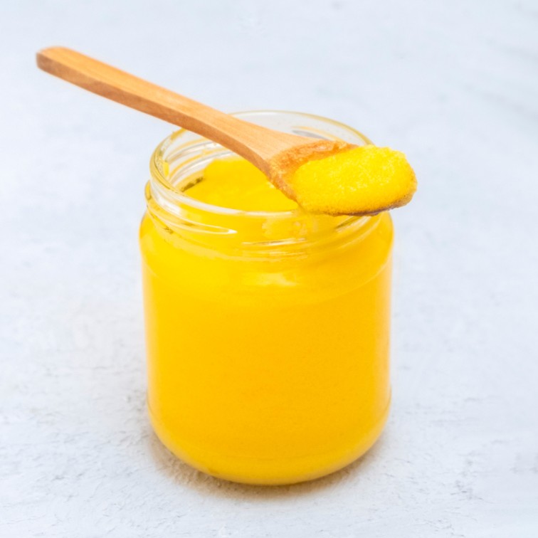 • Hand-churned curd converted to butter and then simmered to make ghee